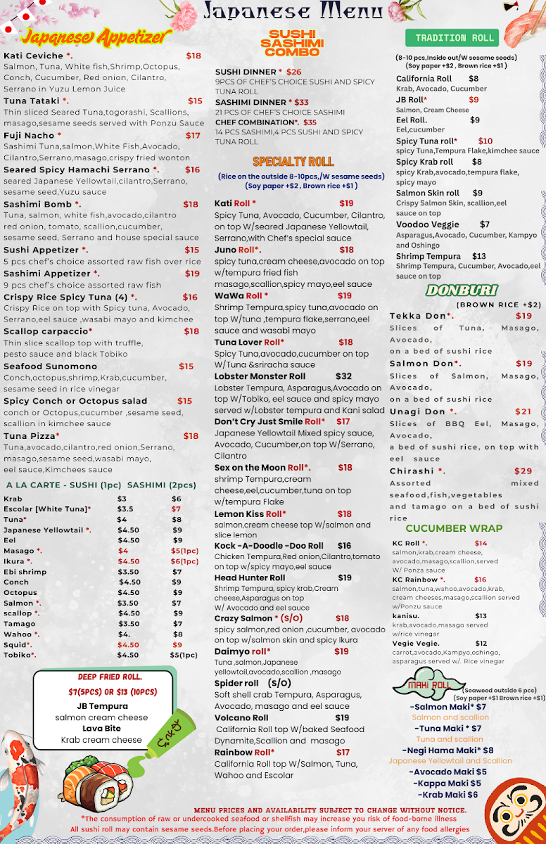 Krab, spicy mayo, cucumber, tempura flake, sesame seed